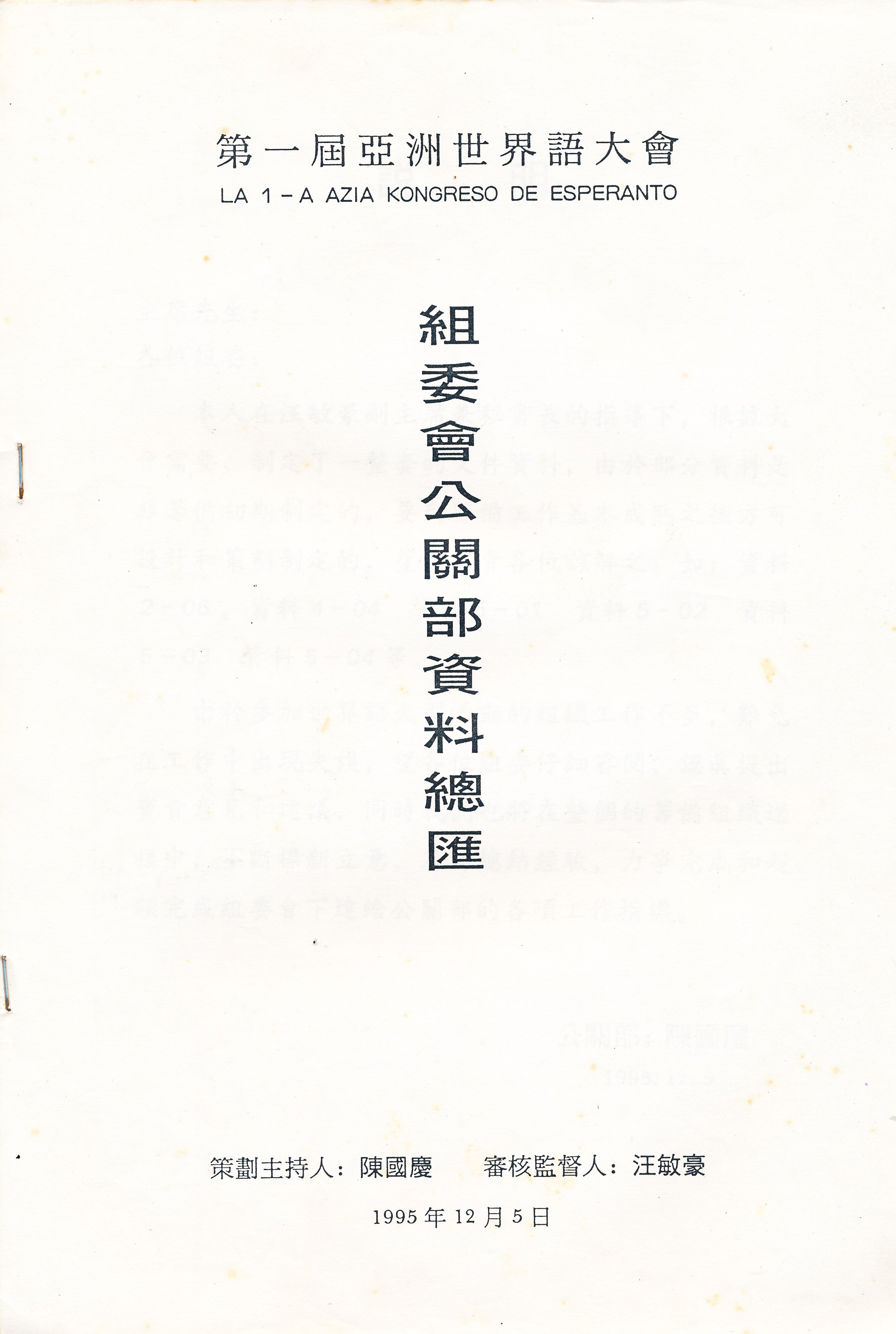 1995年第1届亚洲世界语大会组委会公关部资料总汇