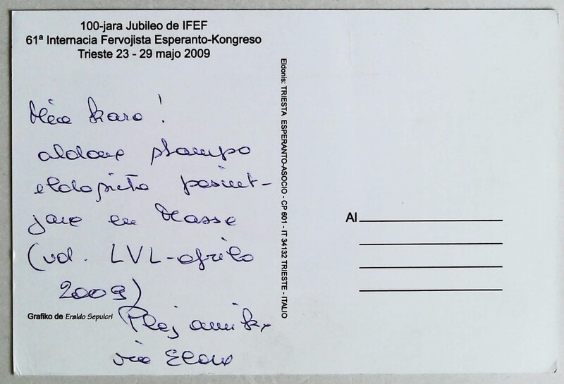 2009年里雅斯特第61届国际世界语铁路员工大会实寄明信片