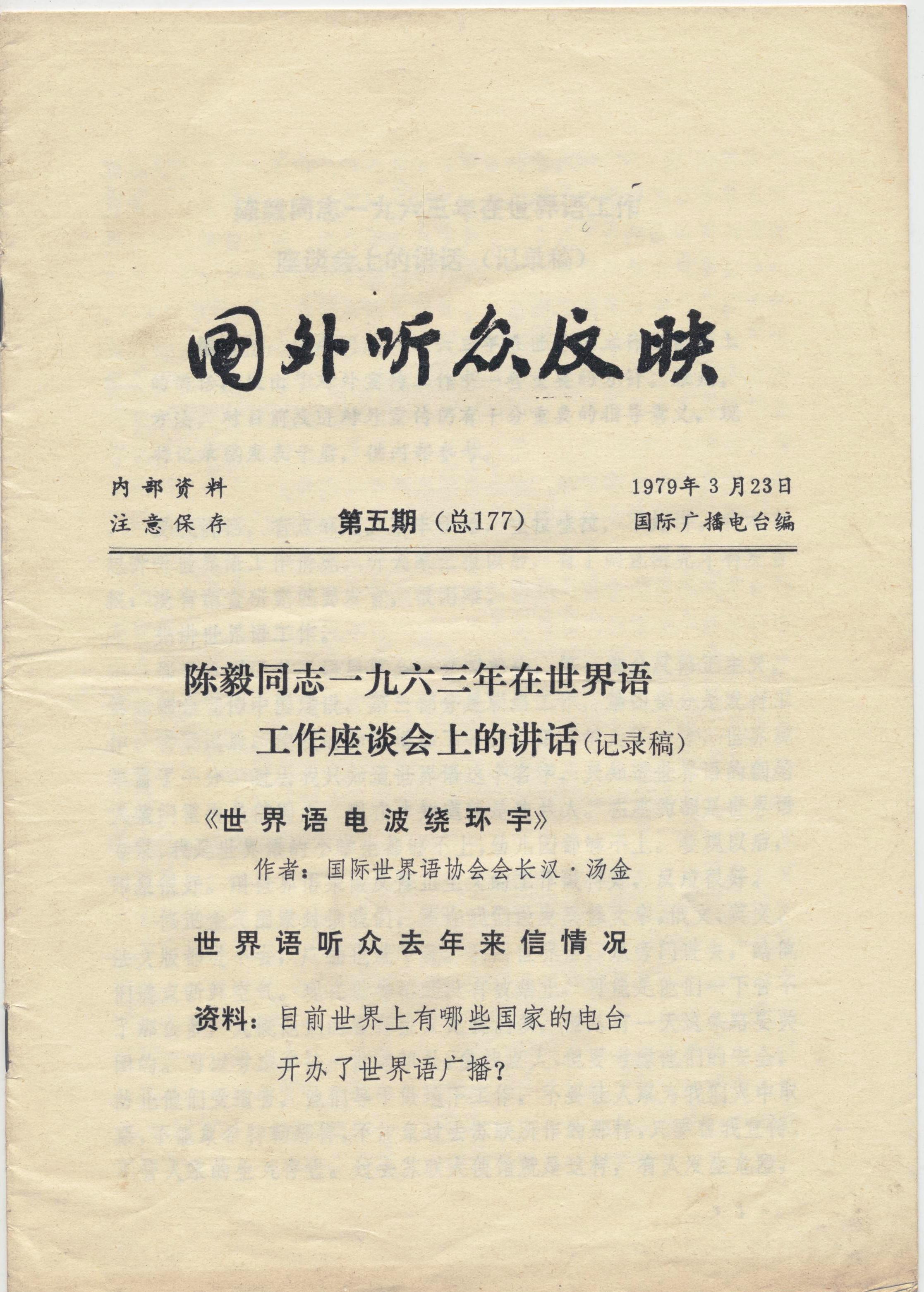 1979年3月23日国际广播电台编《国外听众反应》第五期
