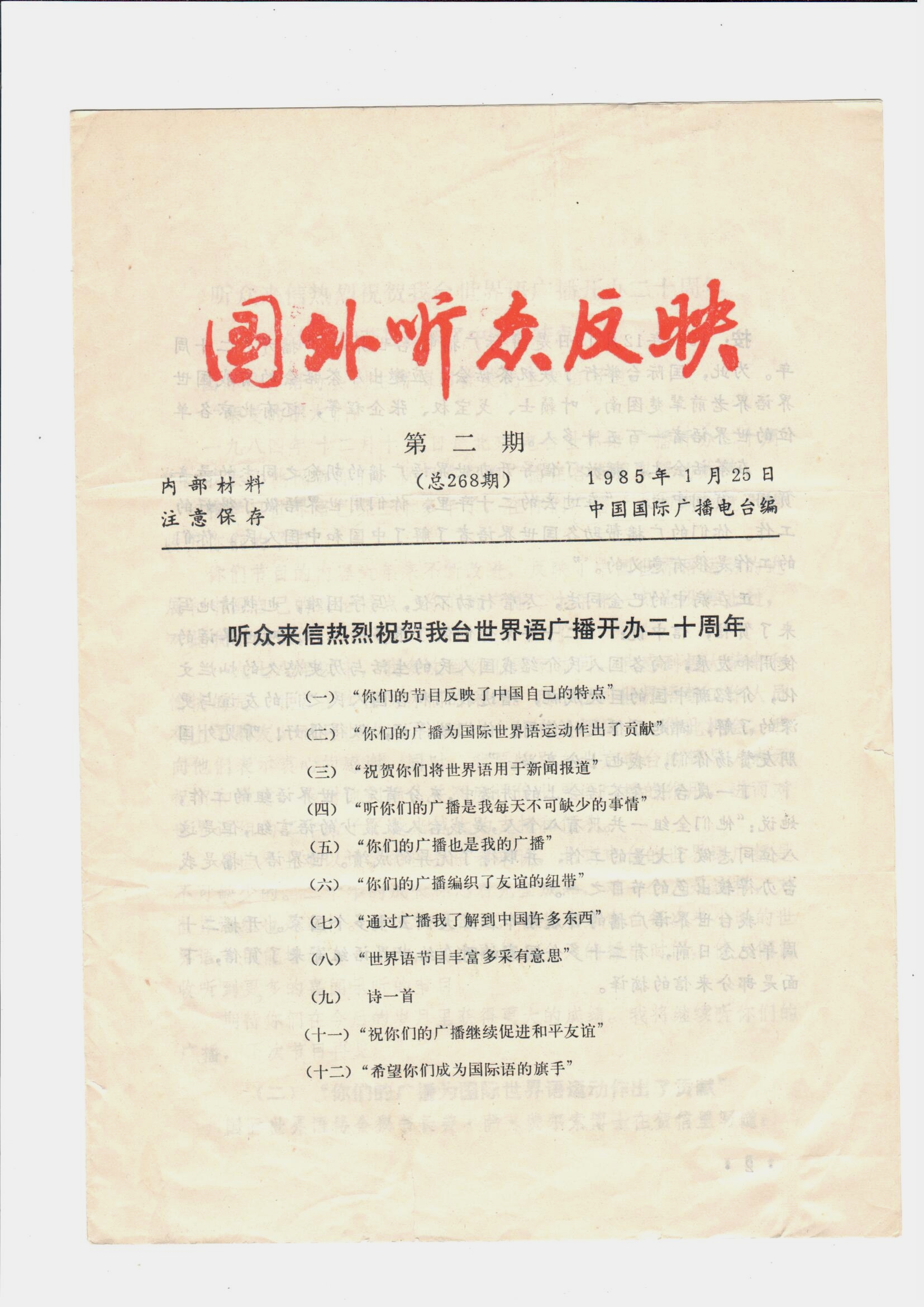 1985年1月25日国际广播电台编《国外听众反映》第二期
