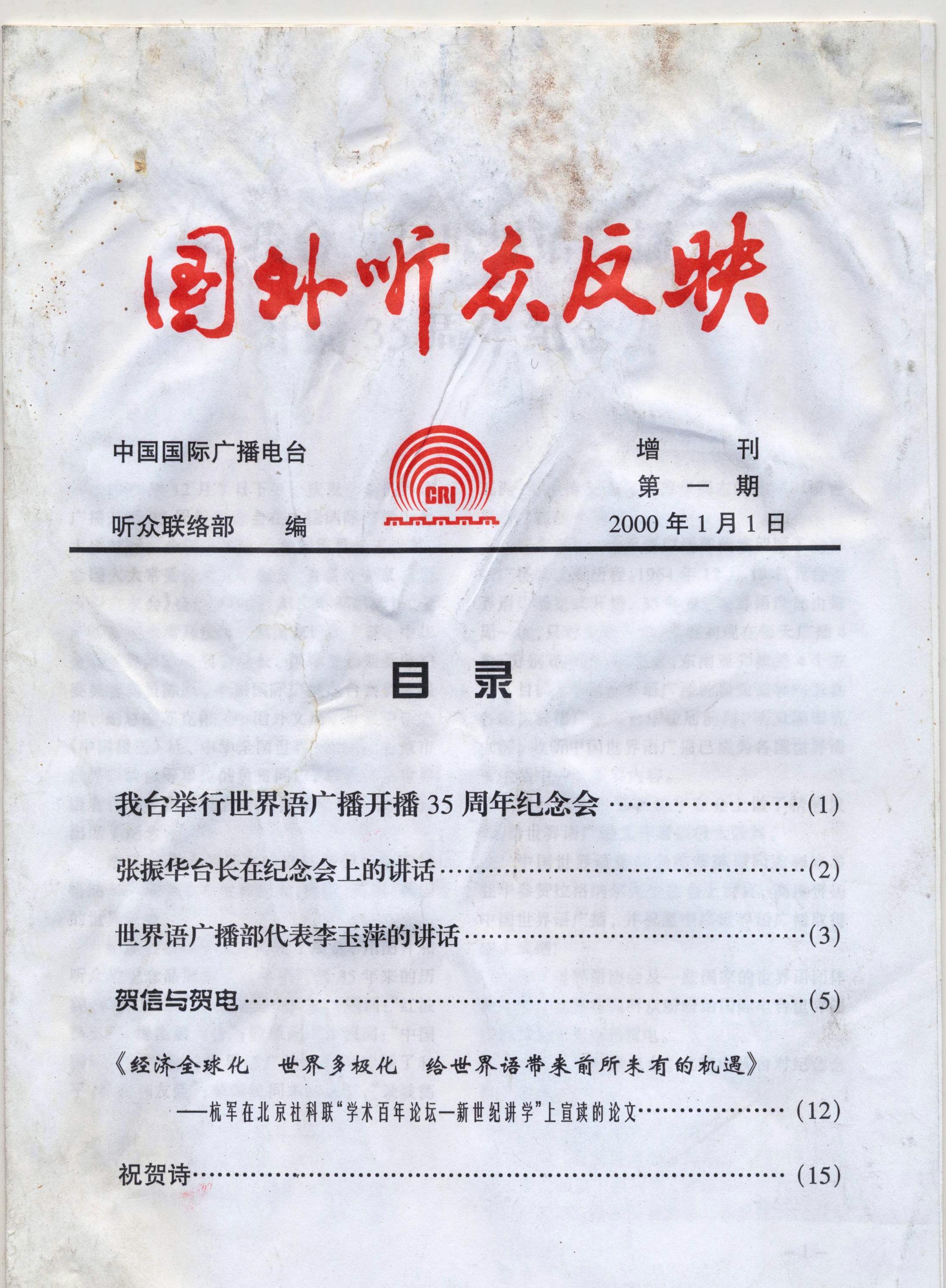 2000年1月1日中国国际广播电台听众联络部编《国外听众反映》第一期