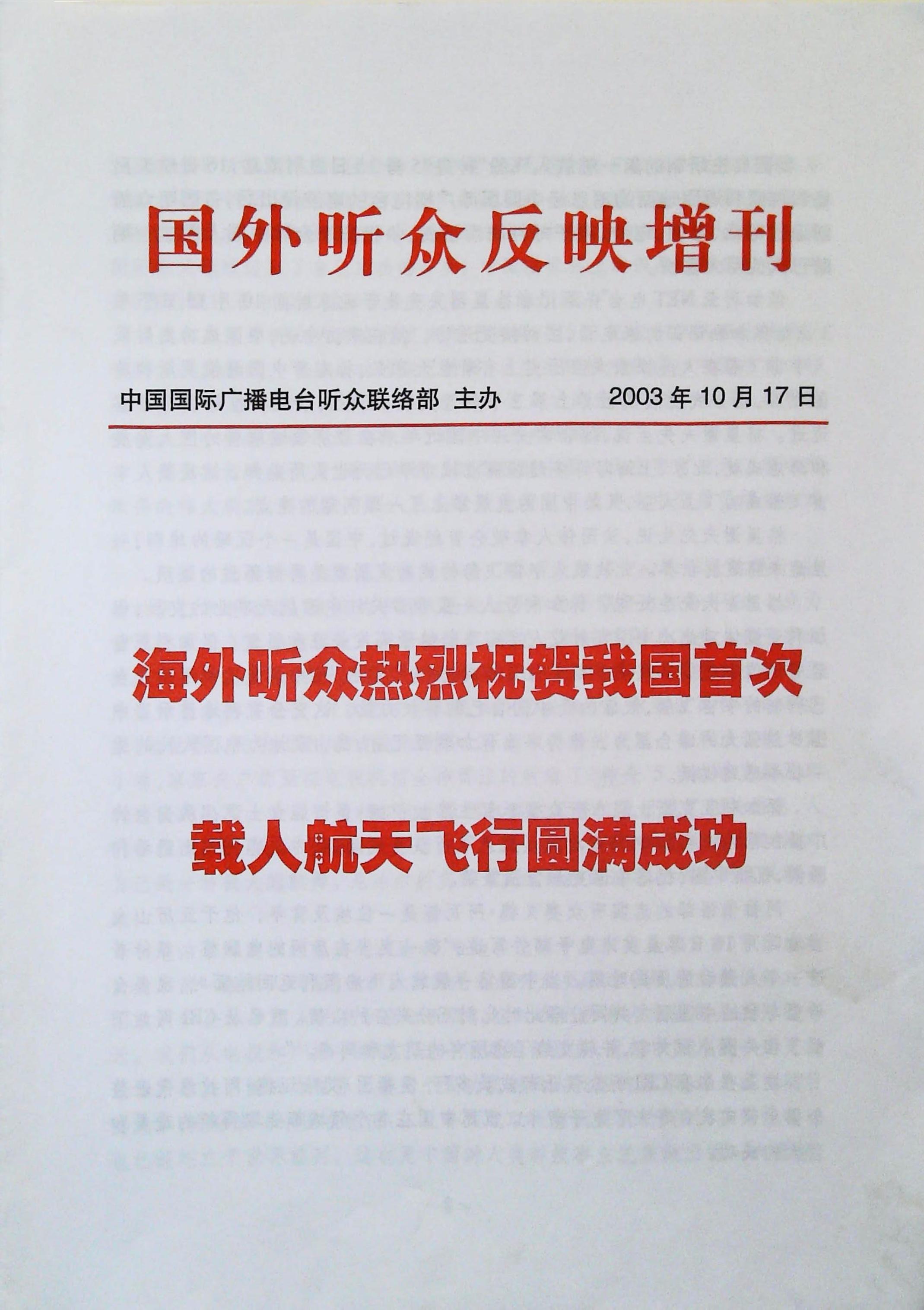 2003年中国国际广播电台听众联络部编《国外听众反映》增刊
