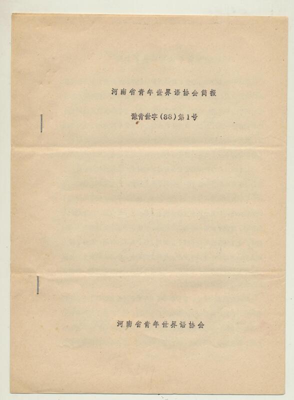 1988年河南省青年世界语协会简报88年第1号