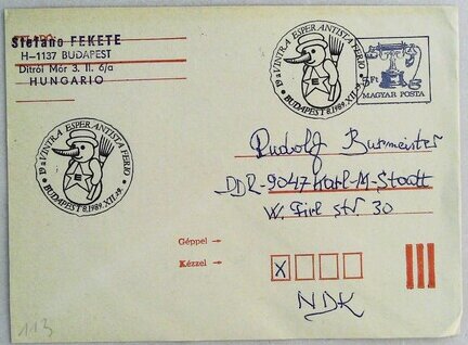 1989年布达佩斯第19个世界语冬令营实寄明信片
