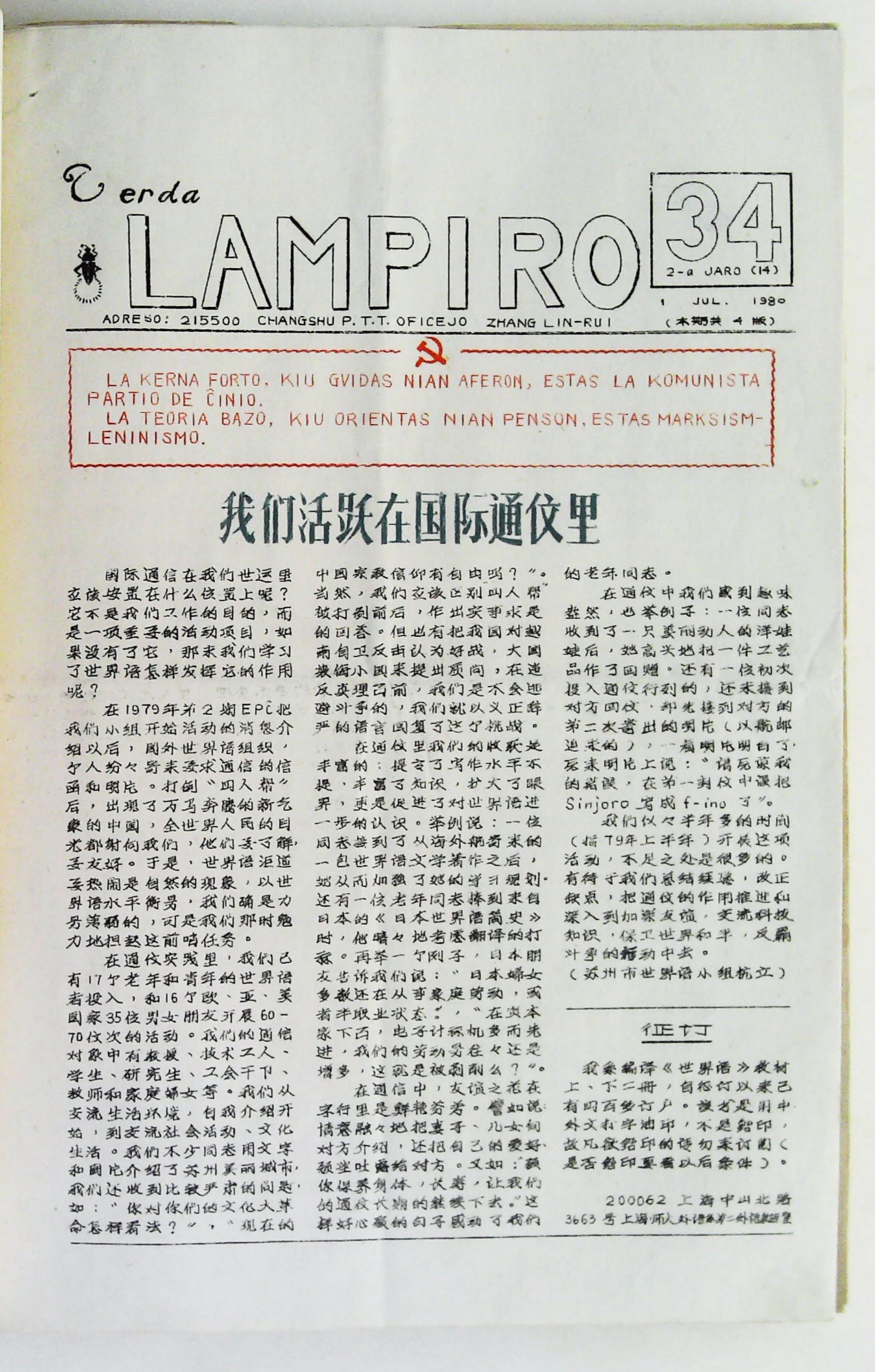 1980年7月1日《Verda Lampiro》第34期