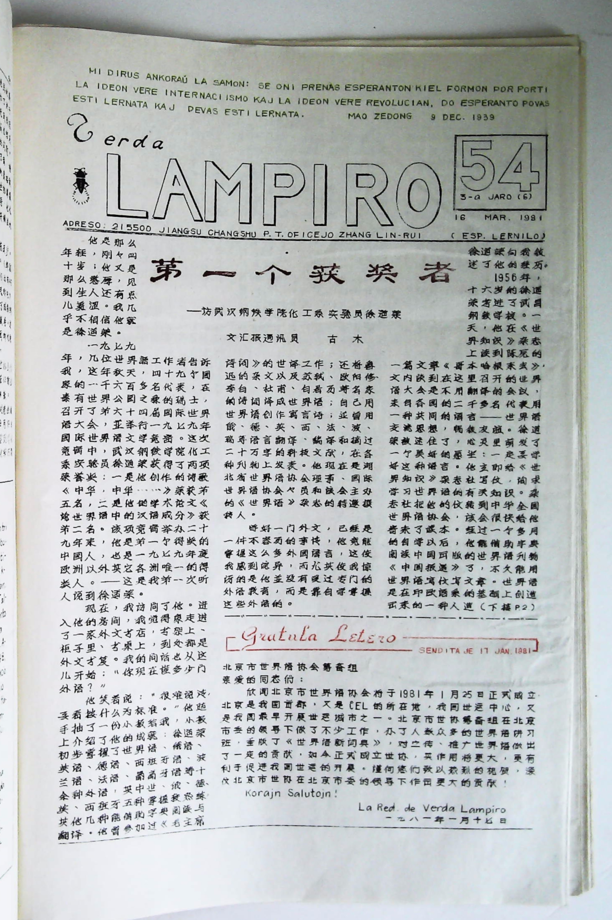 1981年3月16日《Verda Lampiro》第54期