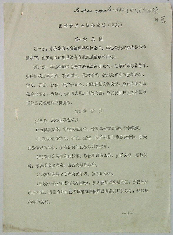 1986年11月24日宝清县世界语协会临时组“关于参加世界语成立…