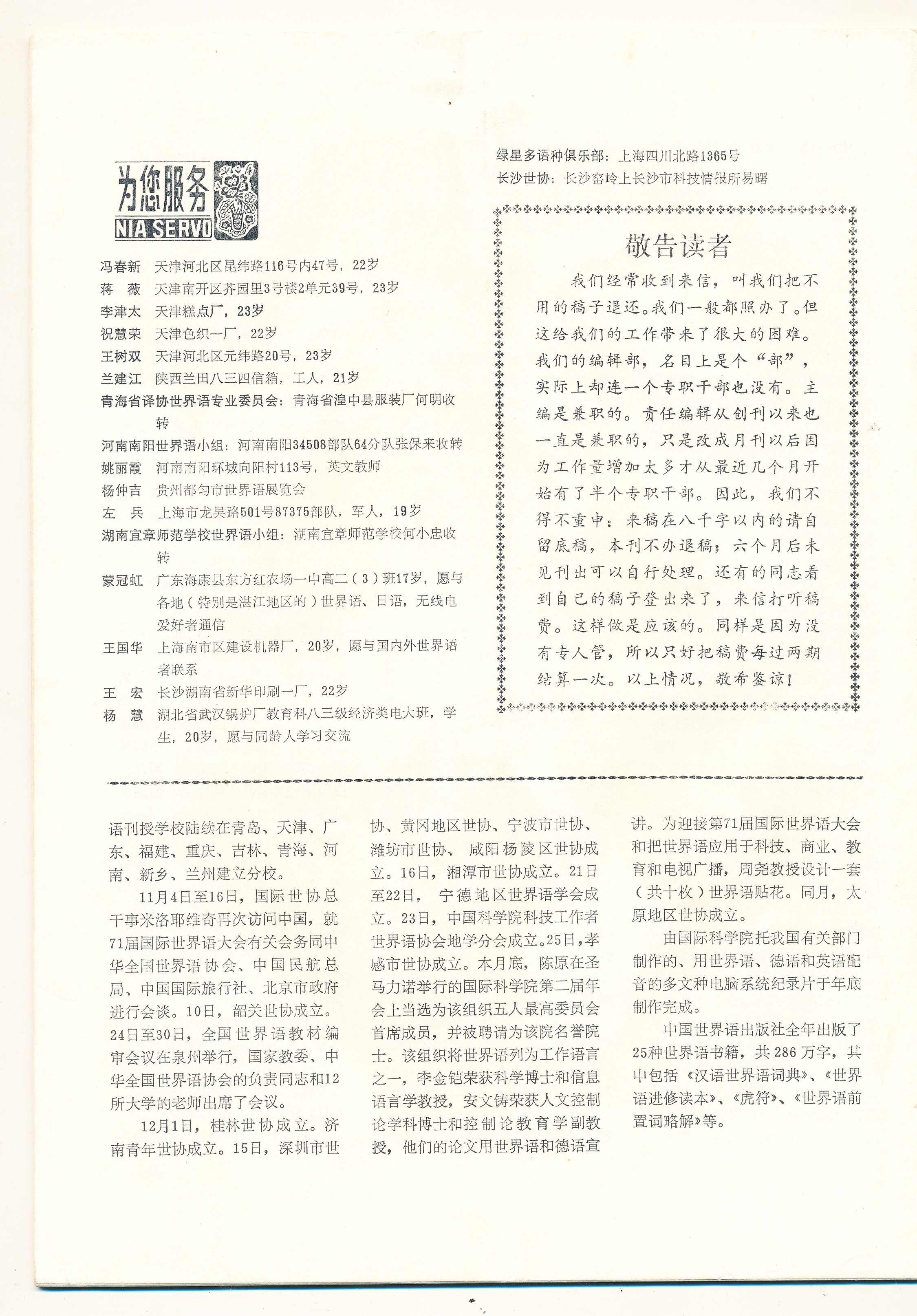 1994年12月21日上海市世界语协会给中华全国世界语协会“关于…
