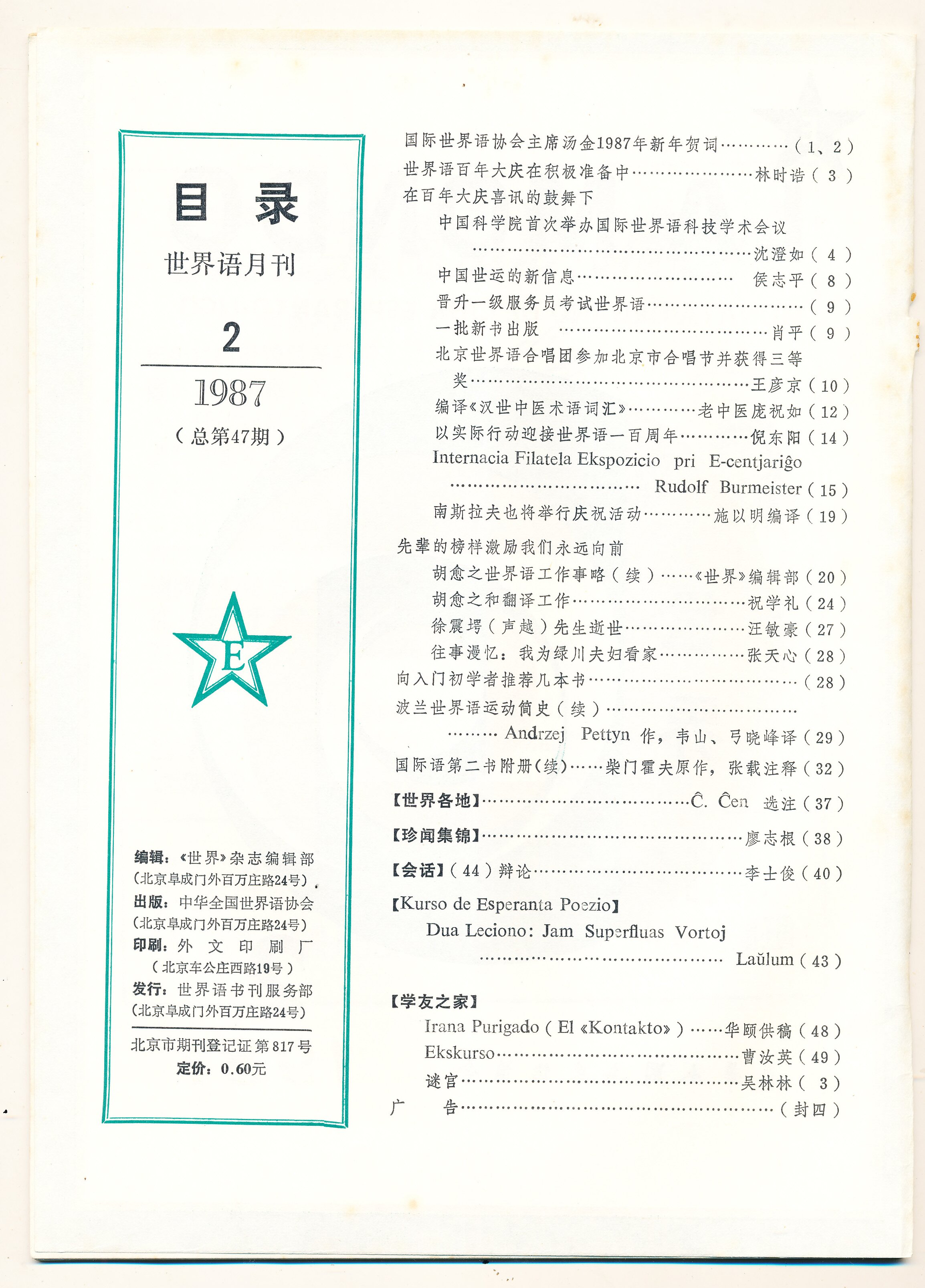 1987年北京《世界》第2期(总第47期)