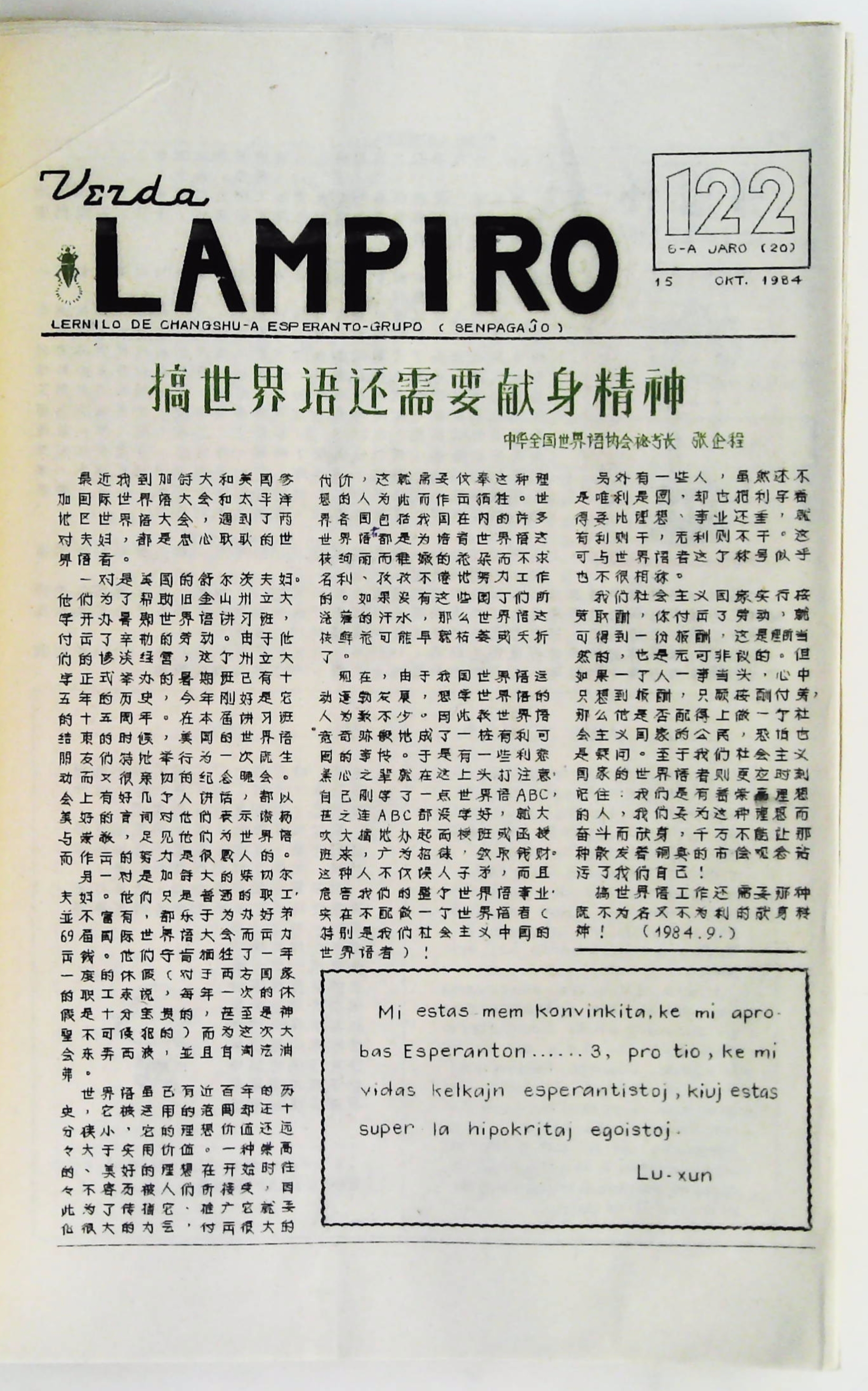 1984年10月15日《Verda Lampiro》第122期