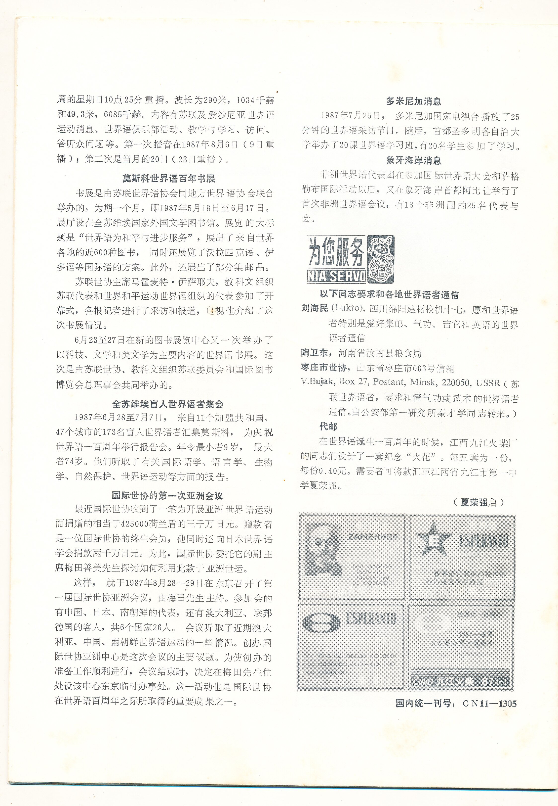 1987年9月25日黑龙江省青年世界语协会的通知