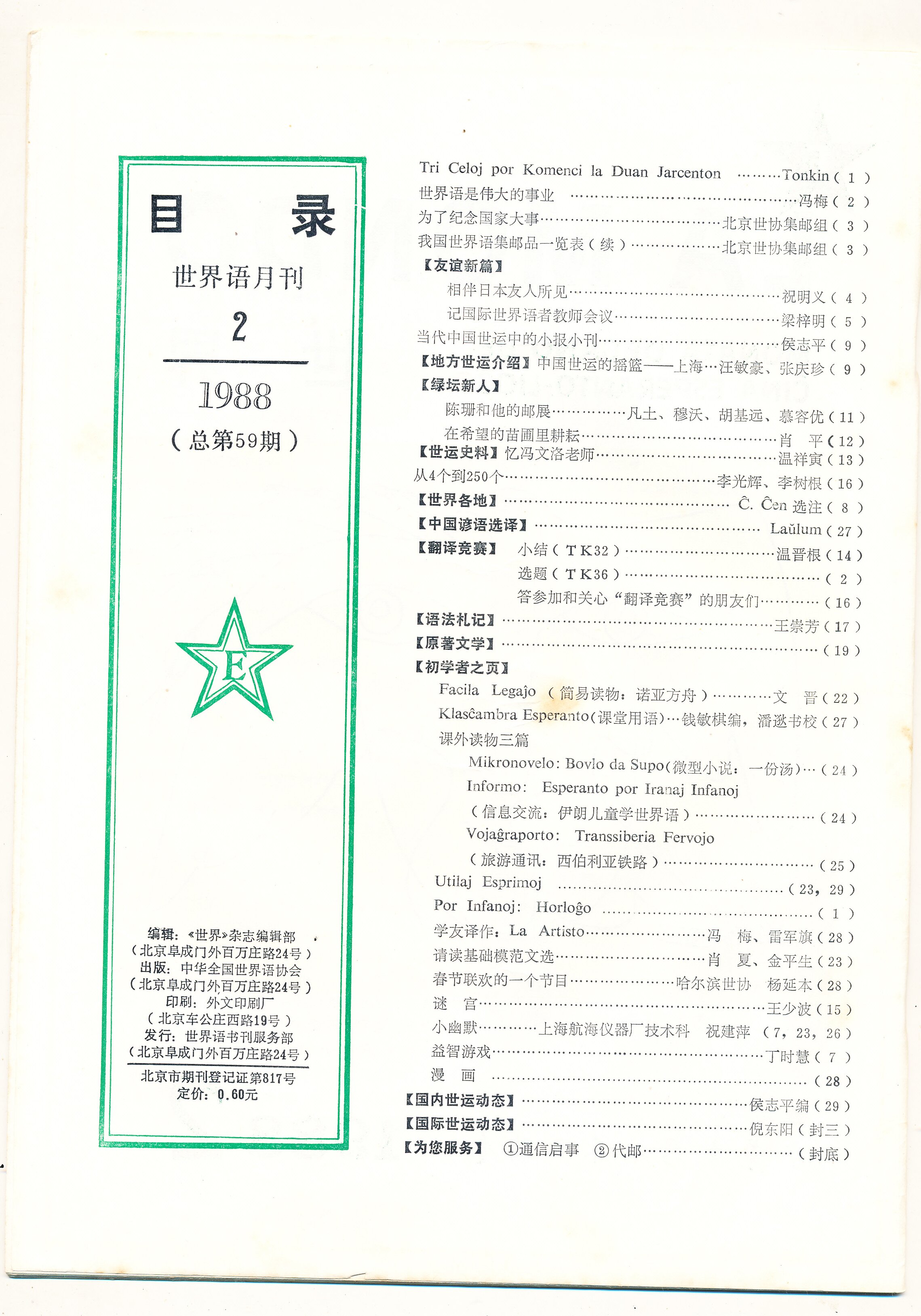 1988年北京《世界》第2期(总第59期)
