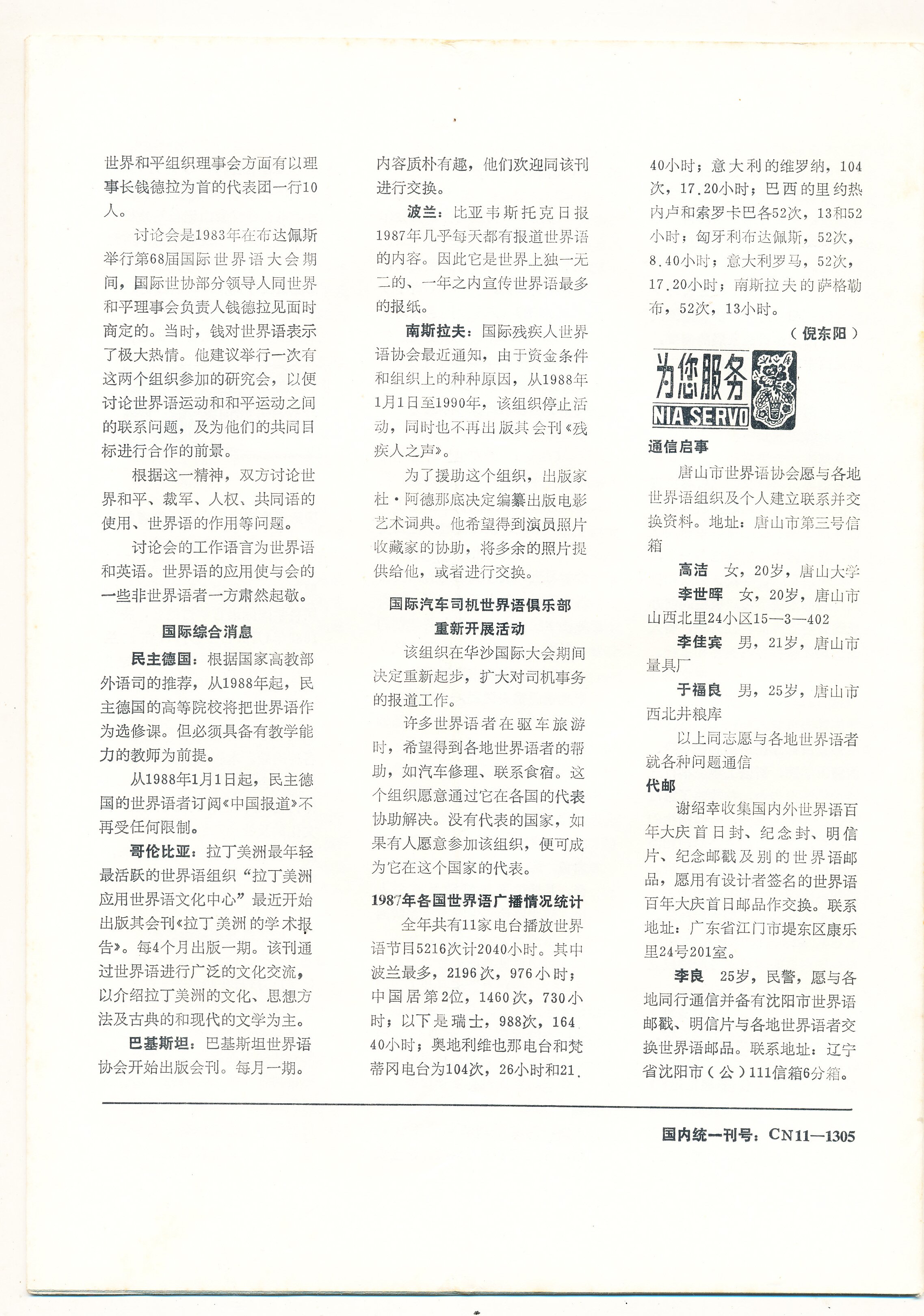 1987年9月25日黑龙江省青年世界语协会的通知