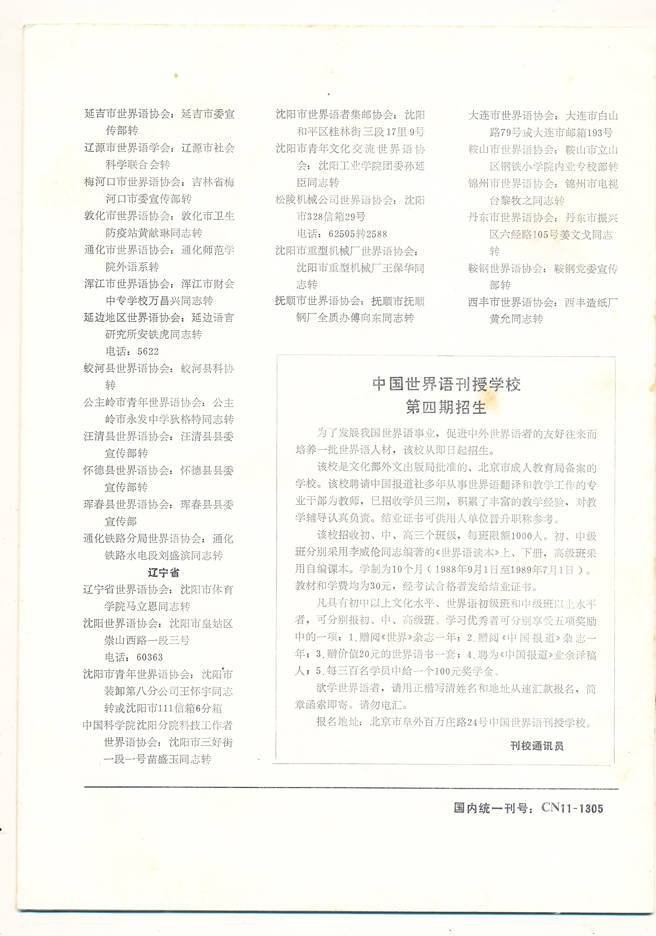 1989年7月10日黑龙江省青年世界语协会会议通知