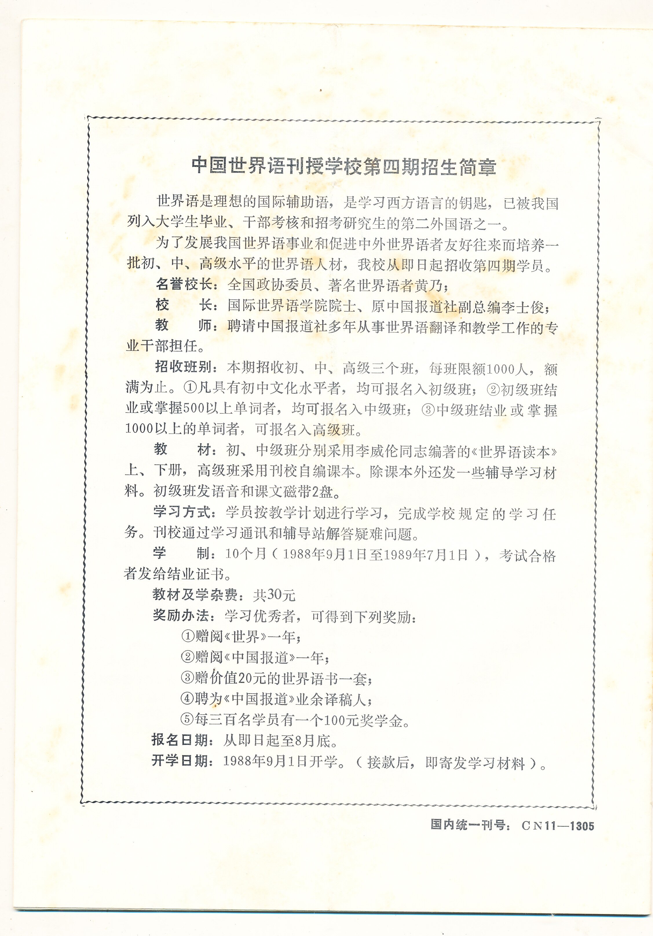 1988年1月10日黑龙江省青年世界语协会的通知