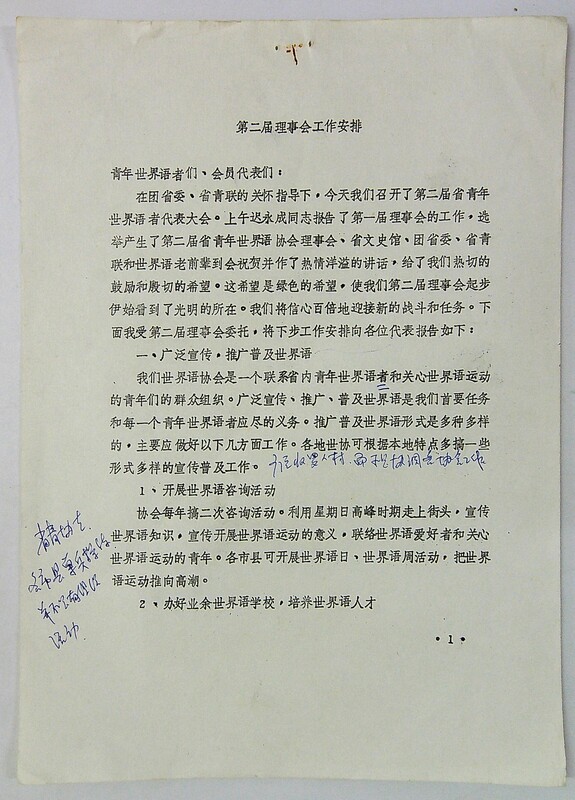 1989年8月18日黑龙江省世界语协会第二届理事会工作安排