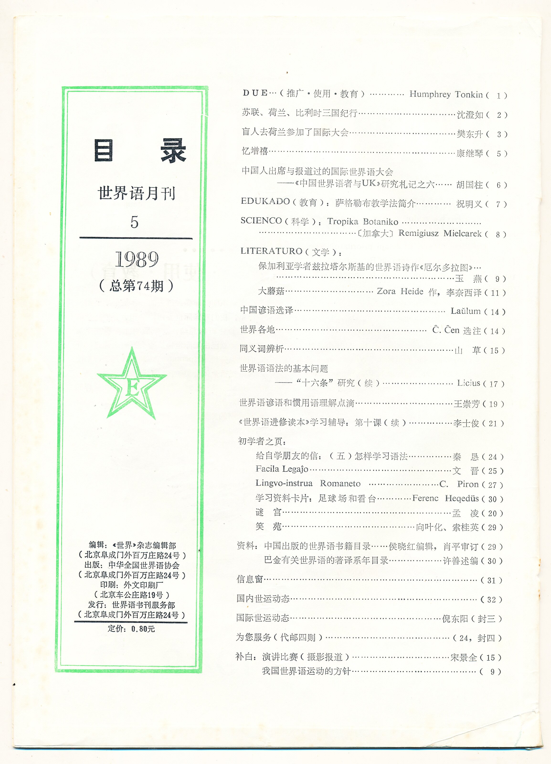 著者:中华全国世界语协会 出版机构:中华全国世界语协会