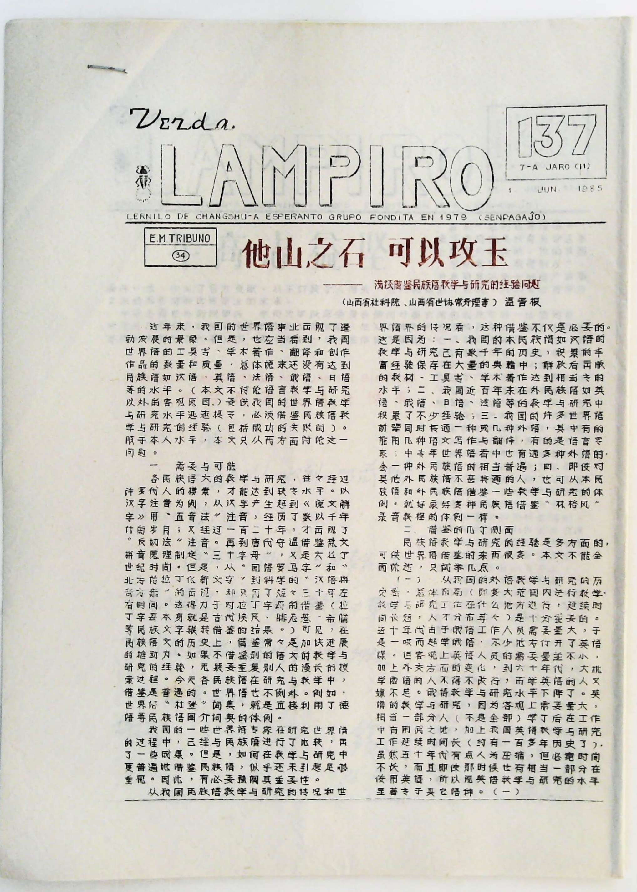 1985年6月1日《Verda Lampiro》第137期