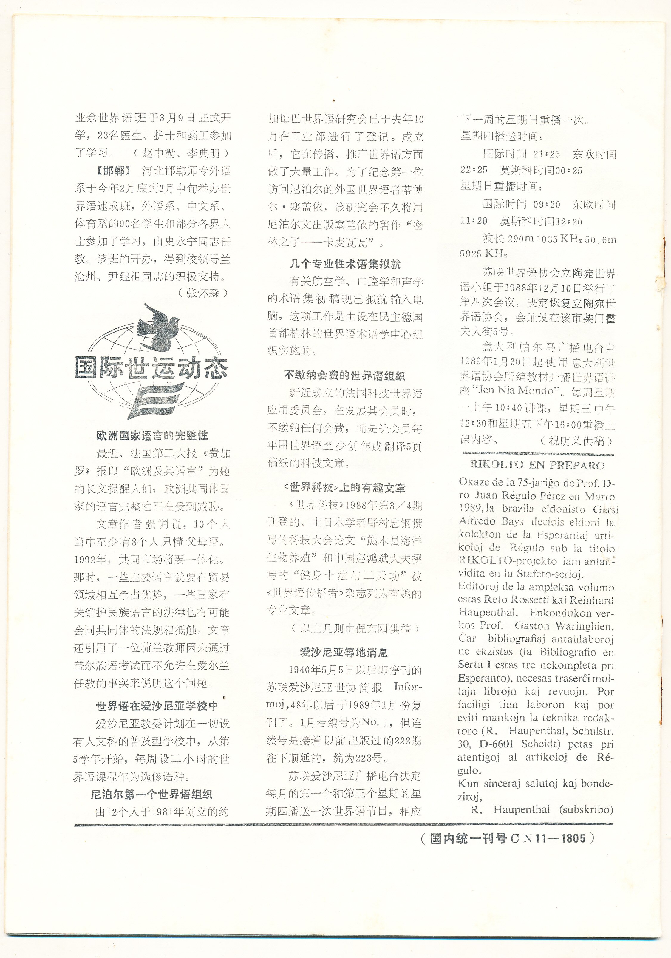 1989年北京《世界》第11期(总第80期)