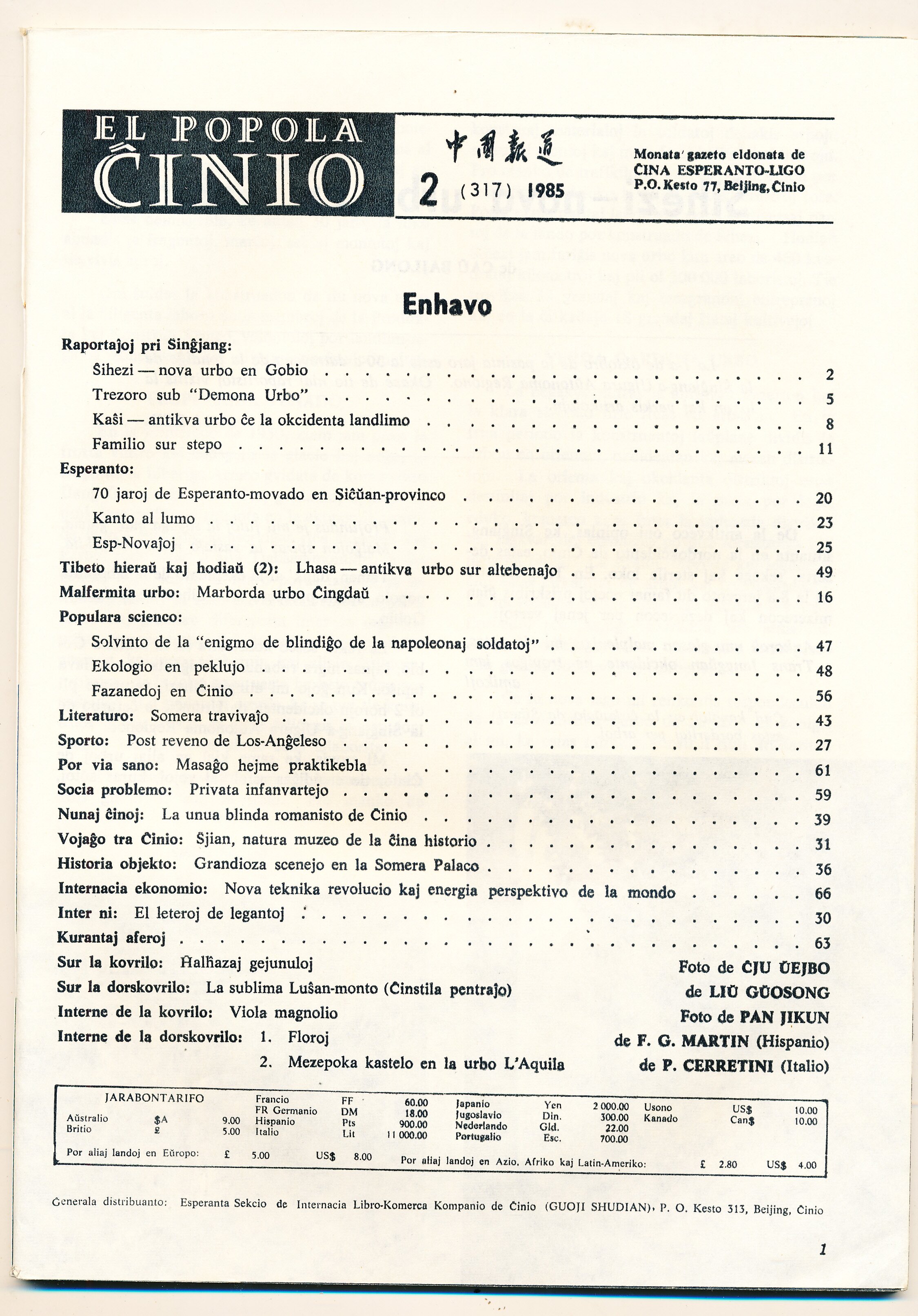 1985年北京《中国报道》第2期(总第317期)
