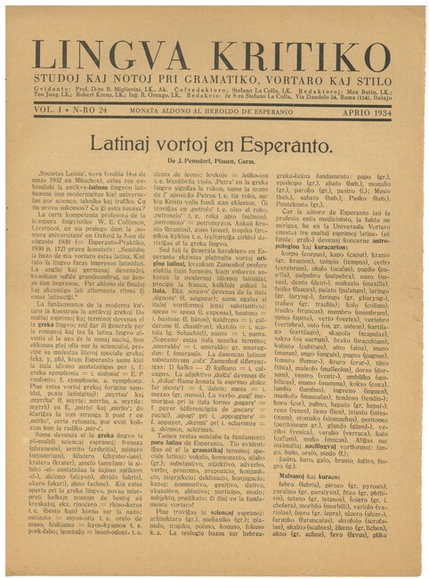 1934年6月罗马出版的第1卷第25期Linva Kritiko(语言批判)