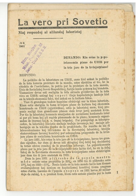 1931年莫斯科出版的第5期 La Vero pri Sovetio(苏维埃真理报)