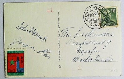 1951年斯德哥尔摩第24届世界超民族协会大会实寄明信片