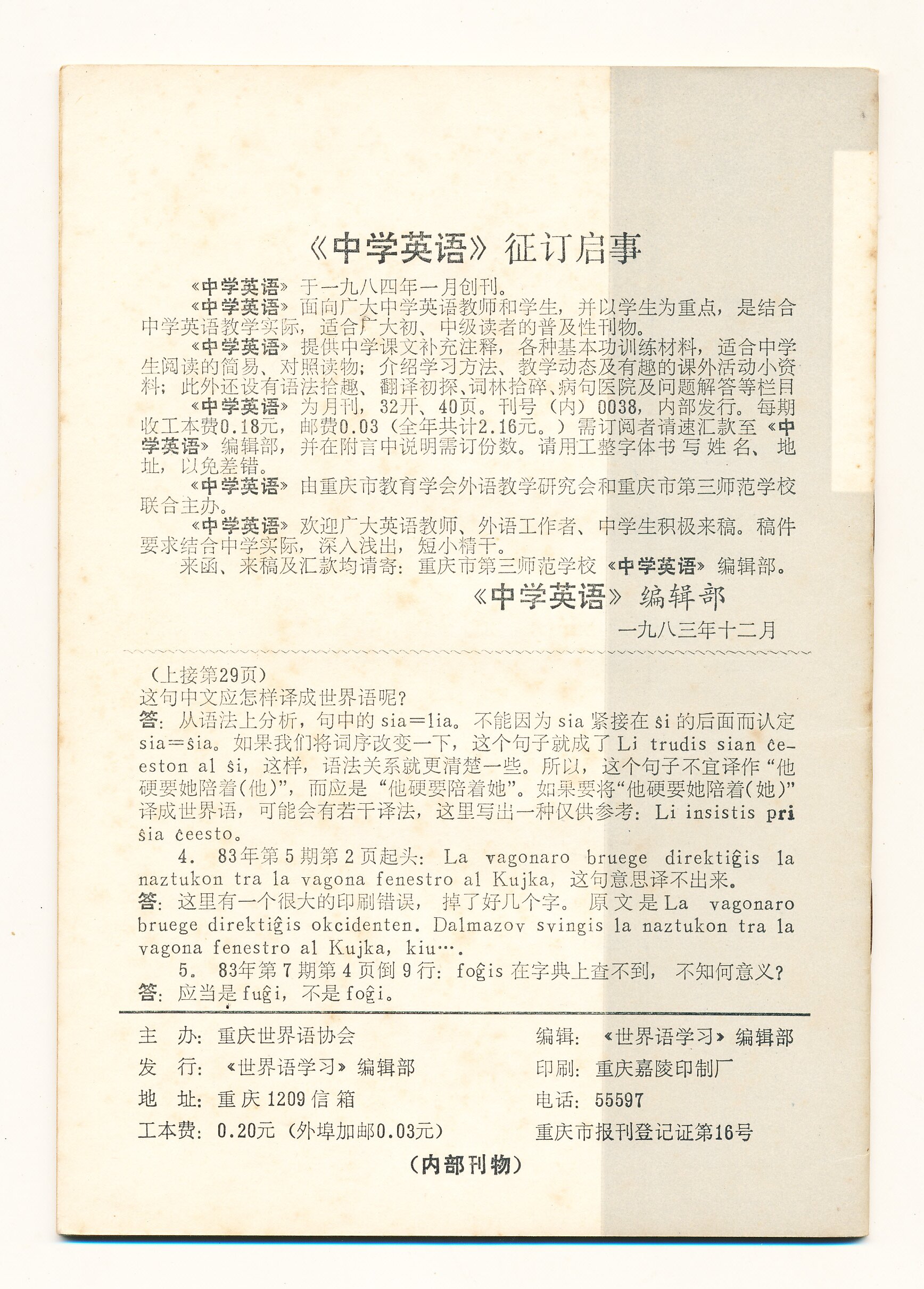 著者:《世界语学习》编辑部 出版机构:重庆世界语协会
