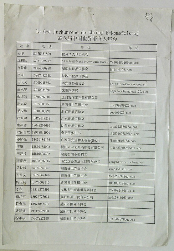 2012年11月3日长沙市第六届中国世界语商人年会通讯录
