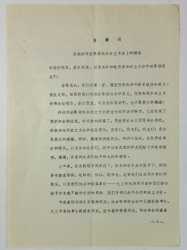 1986年12月27日郴州世界语协会罗建新在郴州市世界语协会成立大会上的讲话