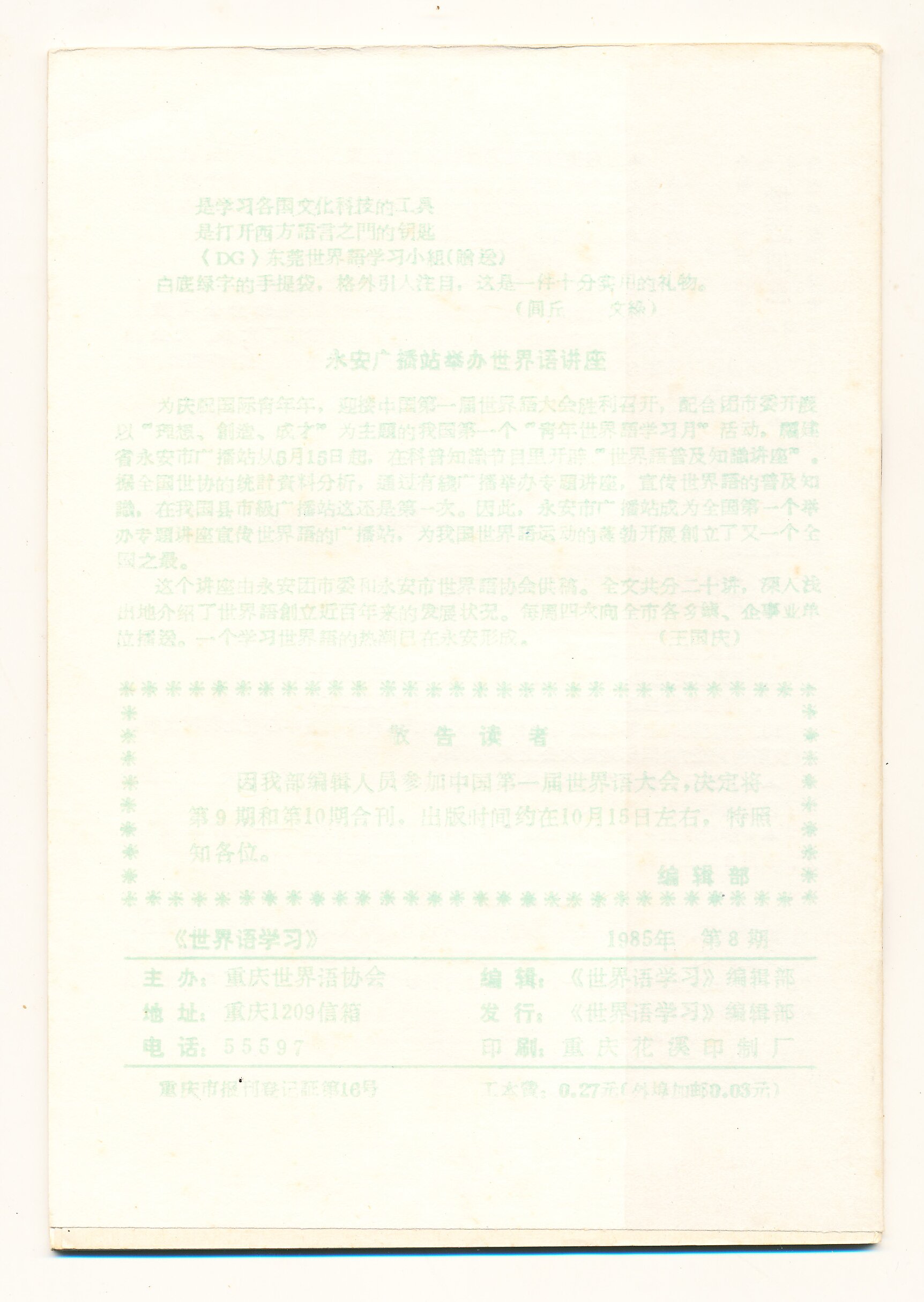 著者:《世界语学习》编辑部 出版机构:重庆世界语协会