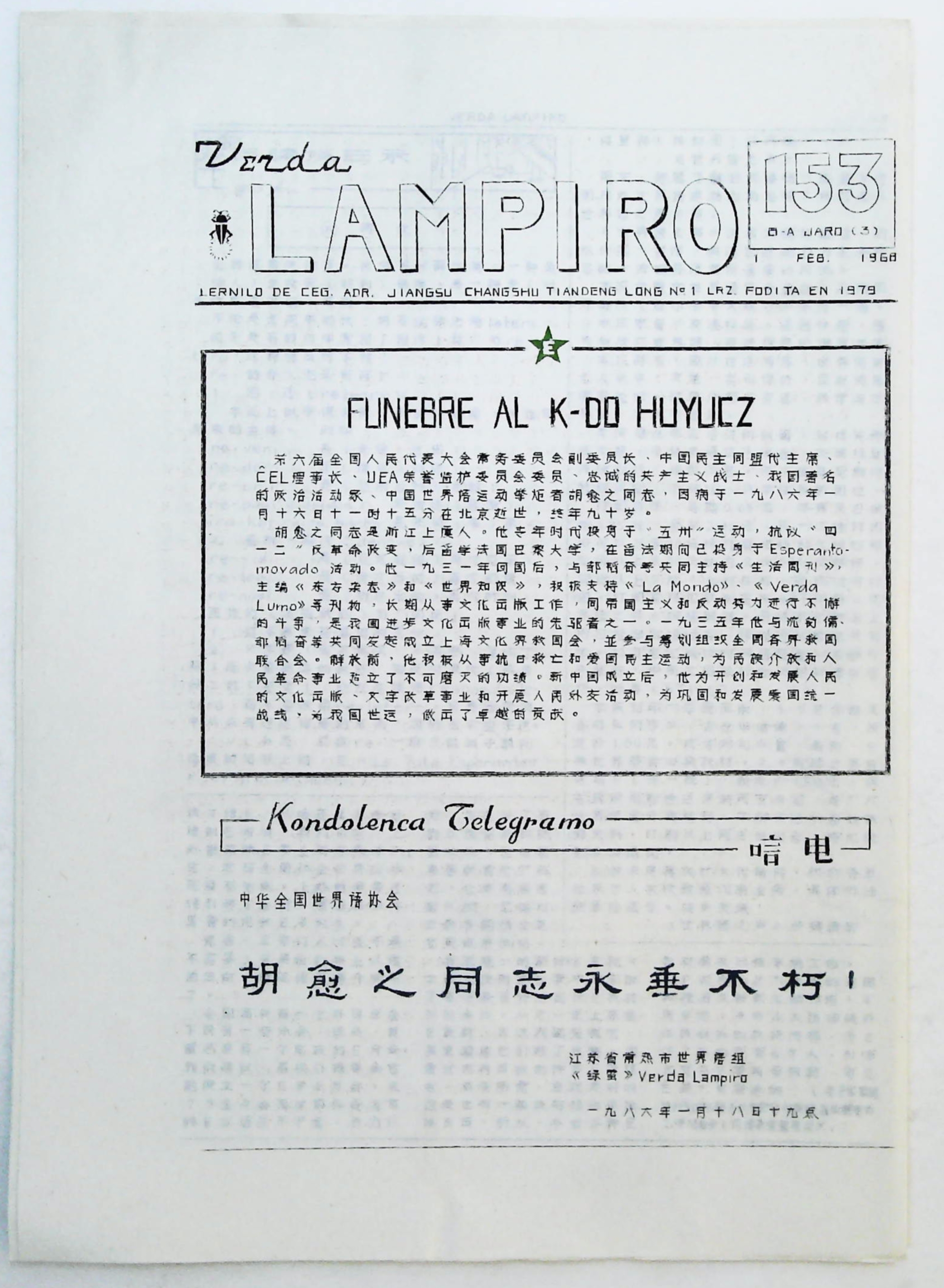 1986年2月1日《Verda Lampiro》第153期