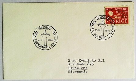 1934年斯德哥尔摩第26届国际世界语大会实寄明信片