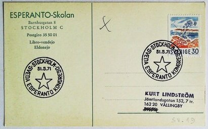 1934年斯德哥尔摩第26届国际世界语大会实寄明信片