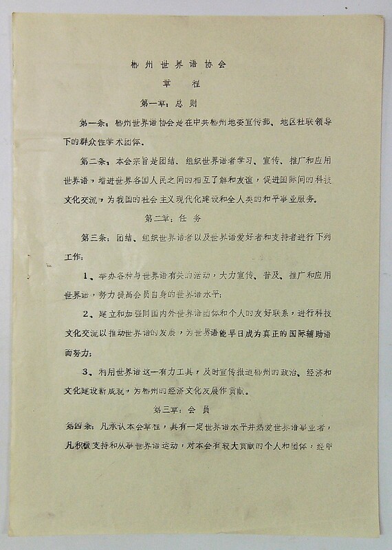 1986年12月郴州世界语协会章程