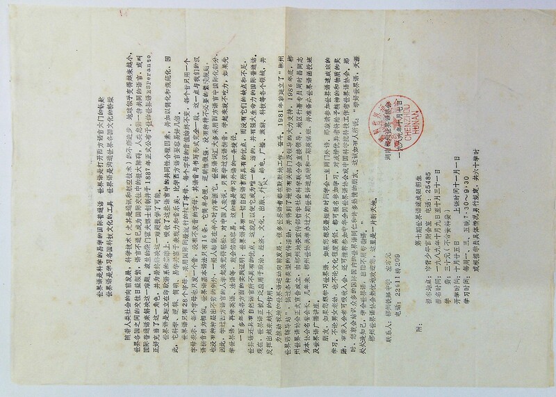 1989年10月7日郴州世界语协会编写的世界语宣传词