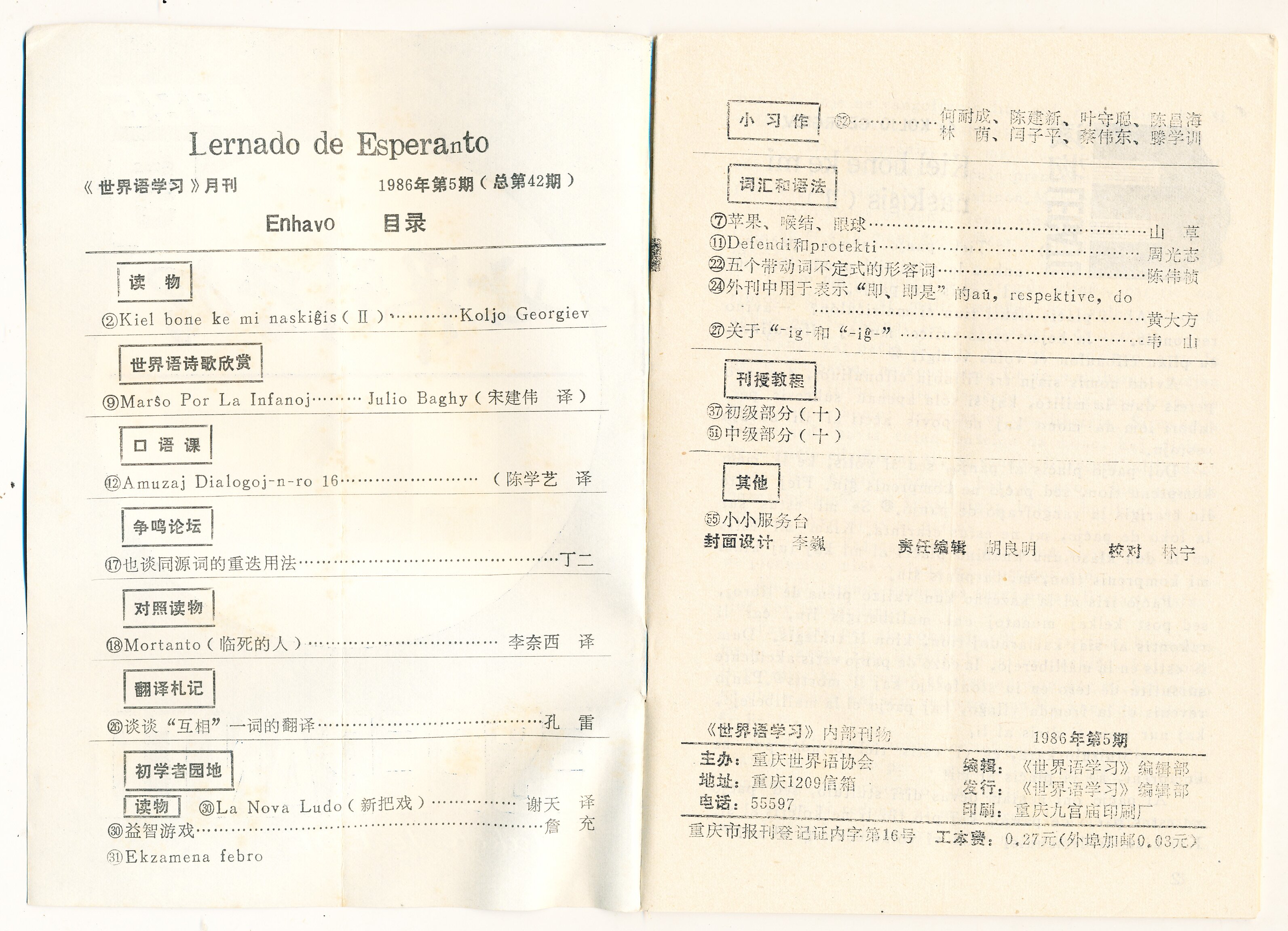 1986年重庆《世界语学习》第5期(总第42期)