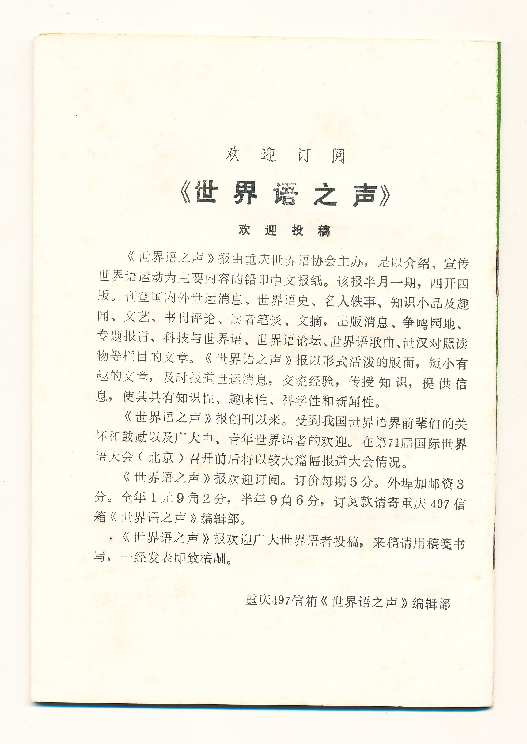 著者:《世界语学习》编辑部 出版机构:重庆世界语协会