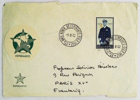 1952年奥斯陆第37届国际世界语大会实寄明信片