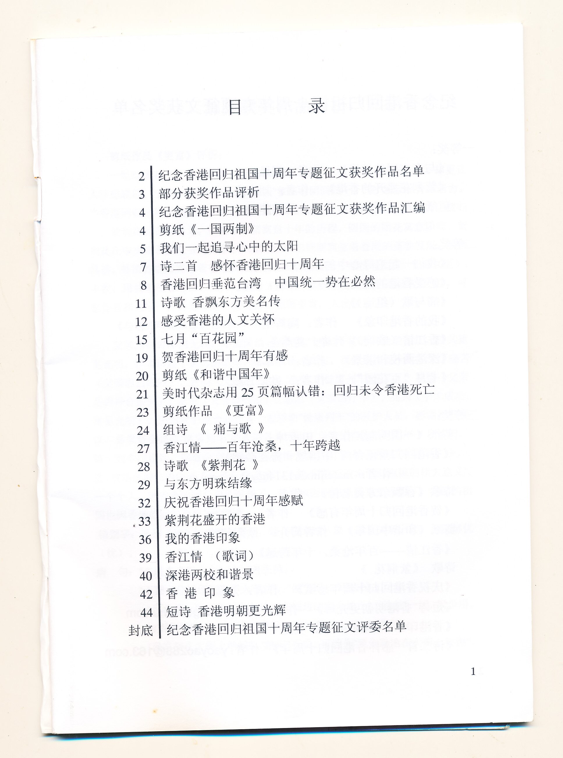 纪念香港回归祖国十周年专题征文获奖作品汇编