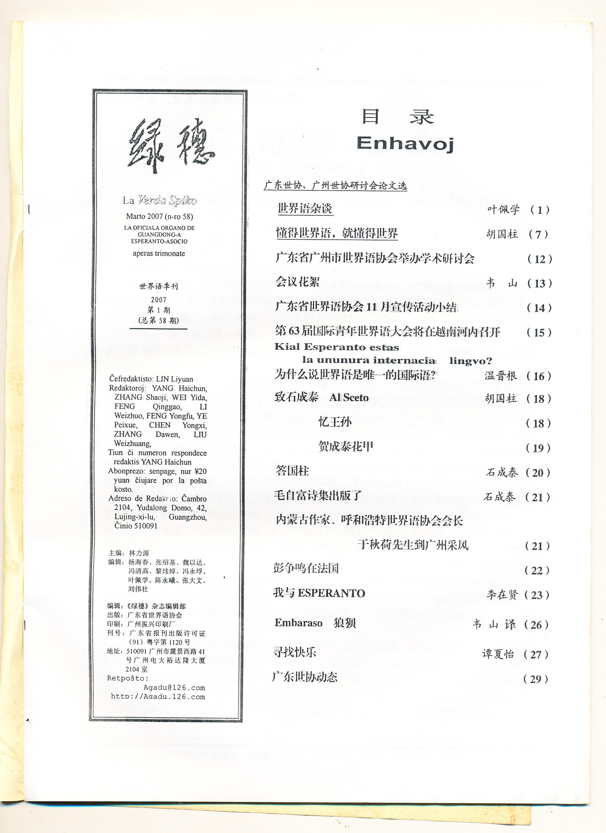 2007年《La Verda Spiko》(绿穗)第1期(总第58期)