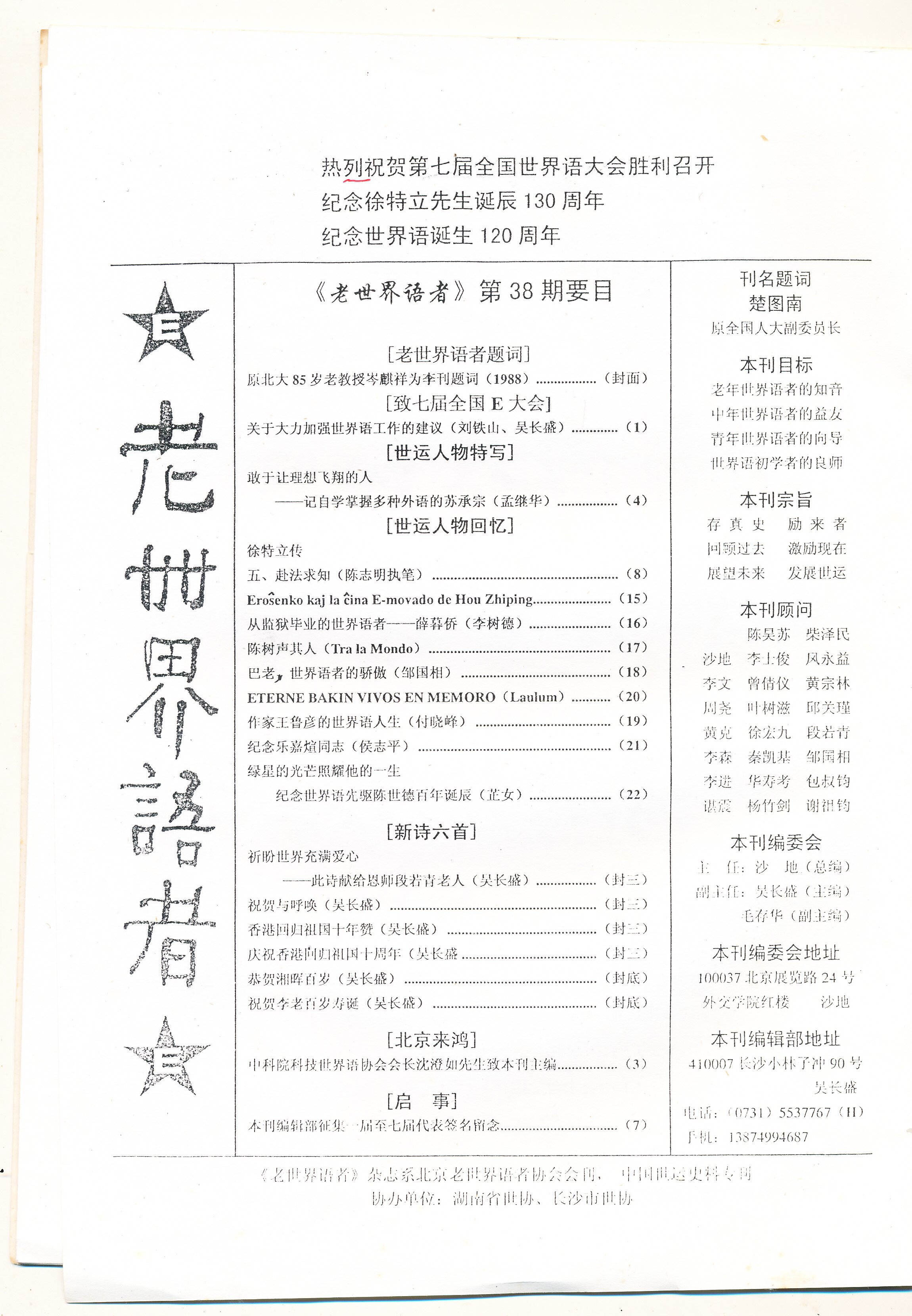 2007年《VETERANA ESPERANTSTO》(老世界语者)第38期