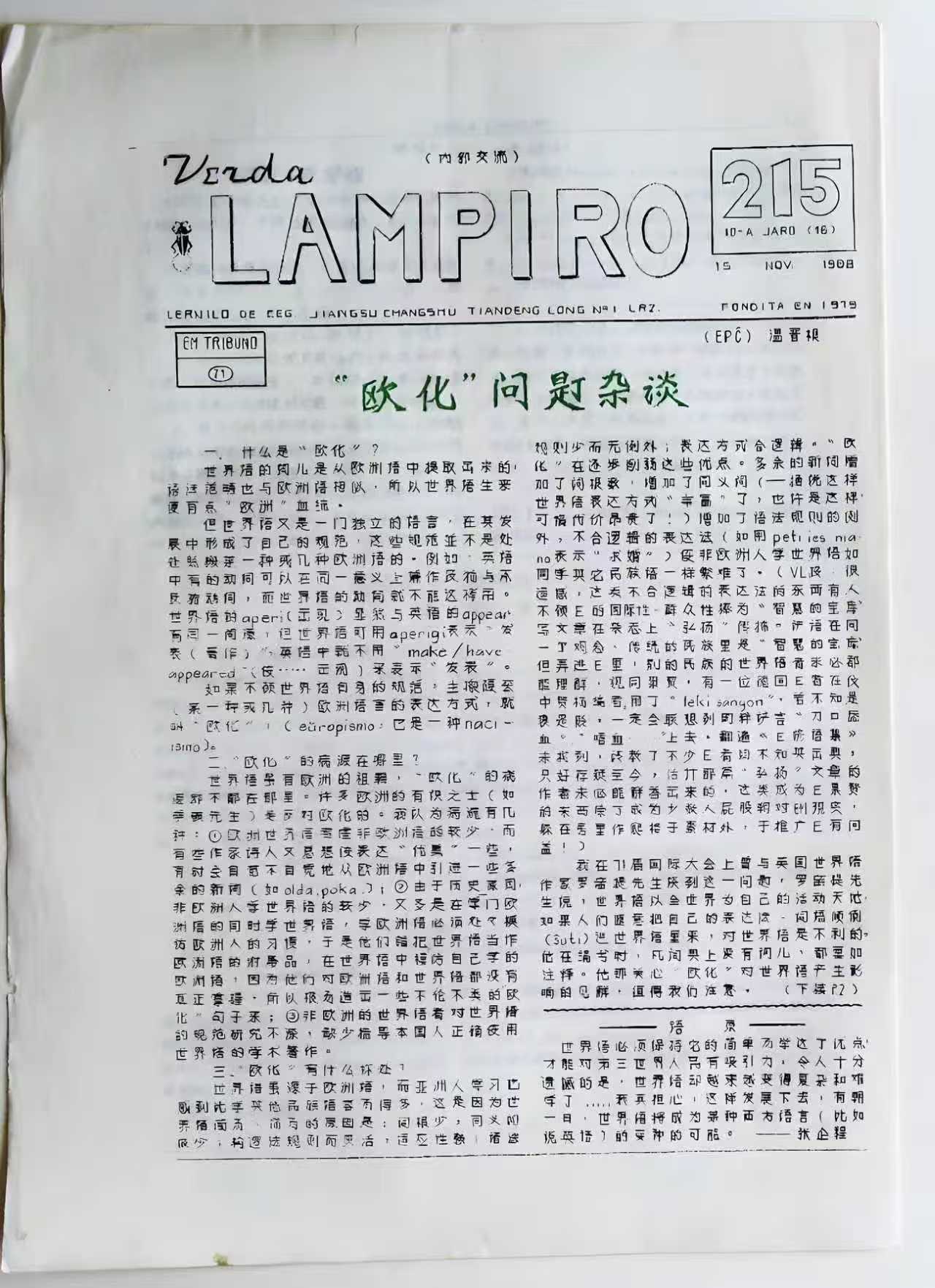 1988年11月15日《Verda Lampiro》第215期