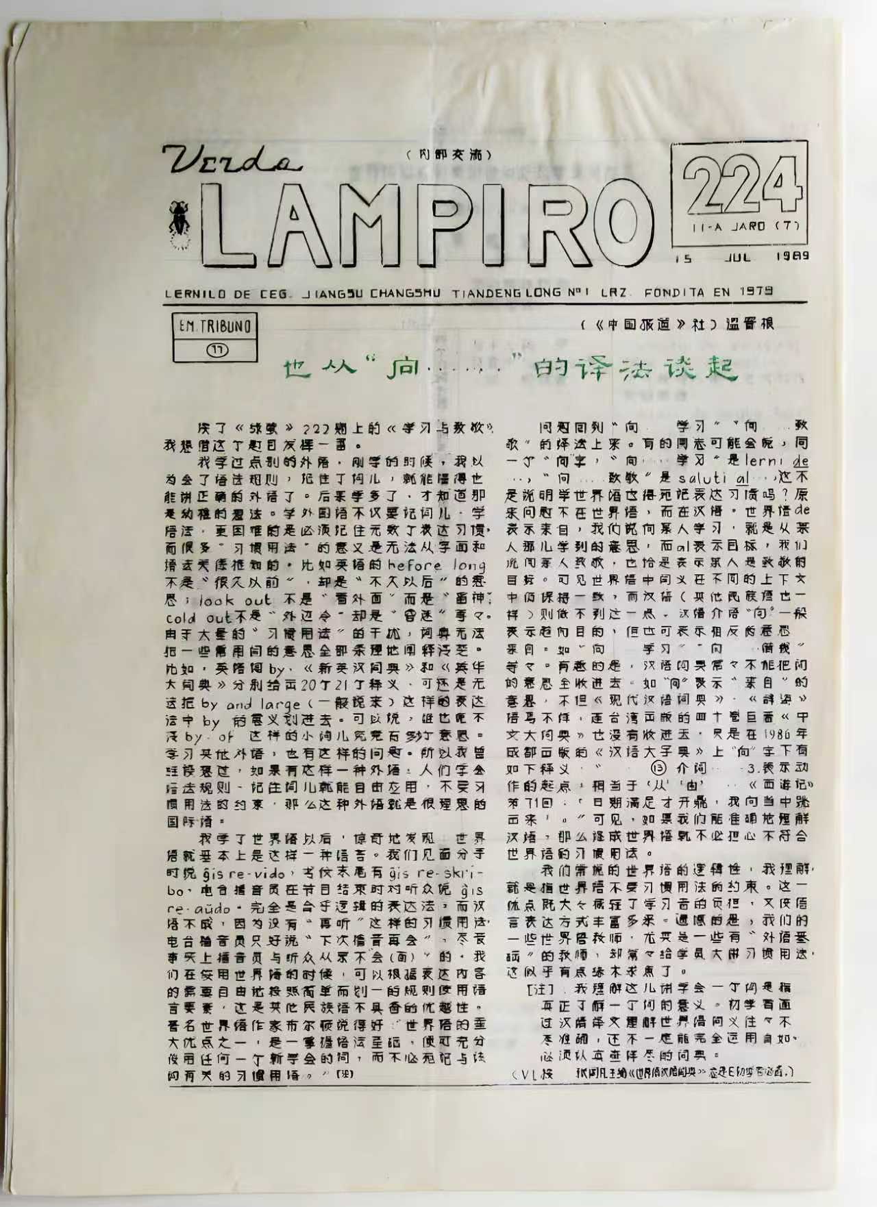 1989年7月15日《Verda Lampiro》第224期