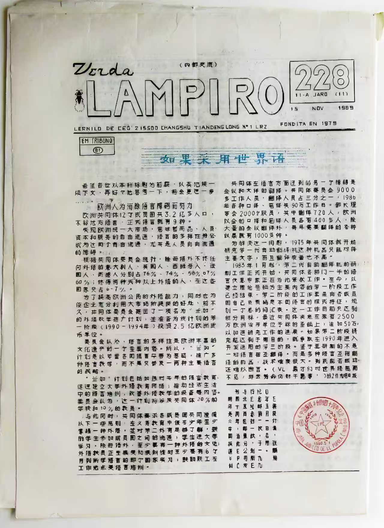 1989年11月15日《Verda Lampiro》第228期