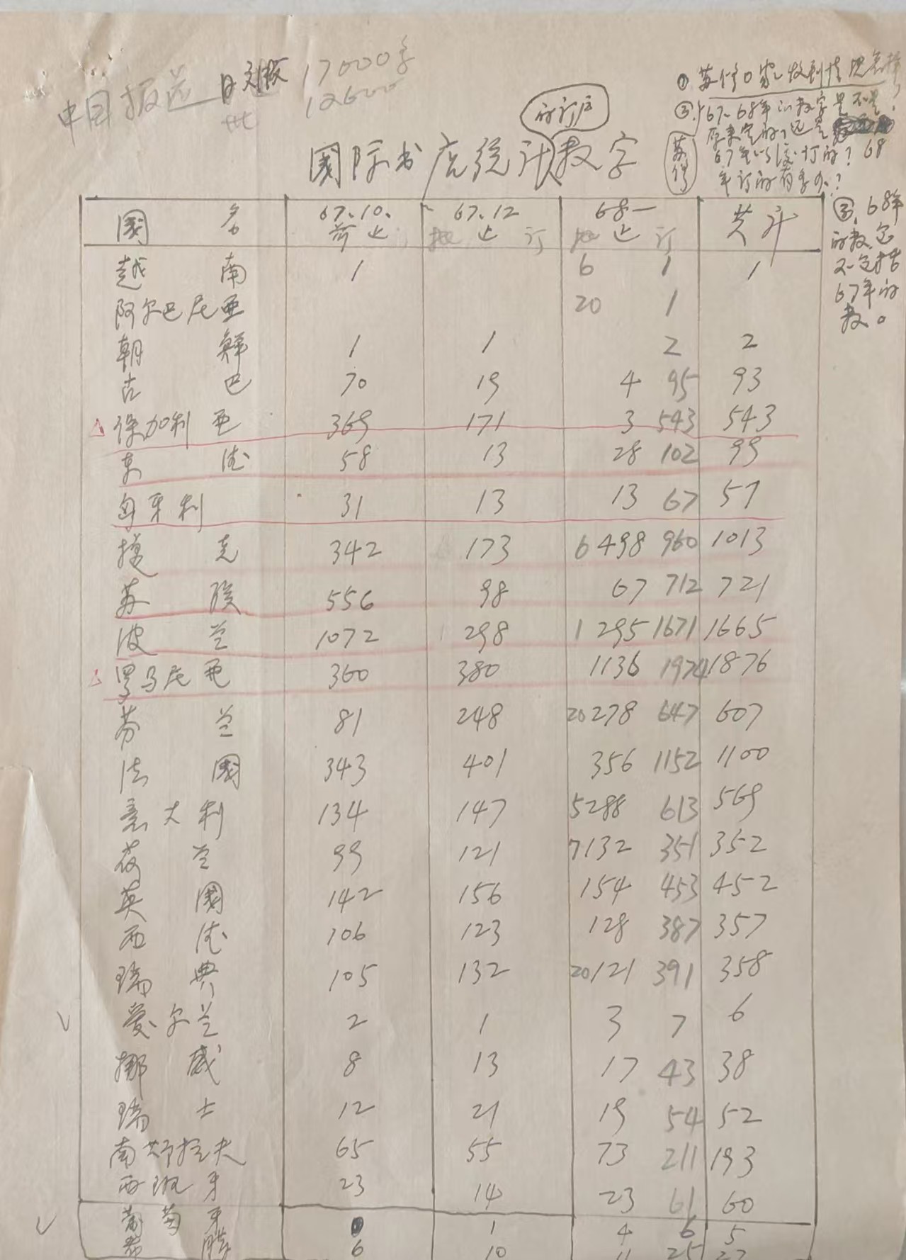 1968年底国际书店统计的《中国报道》(日文版)订户数字