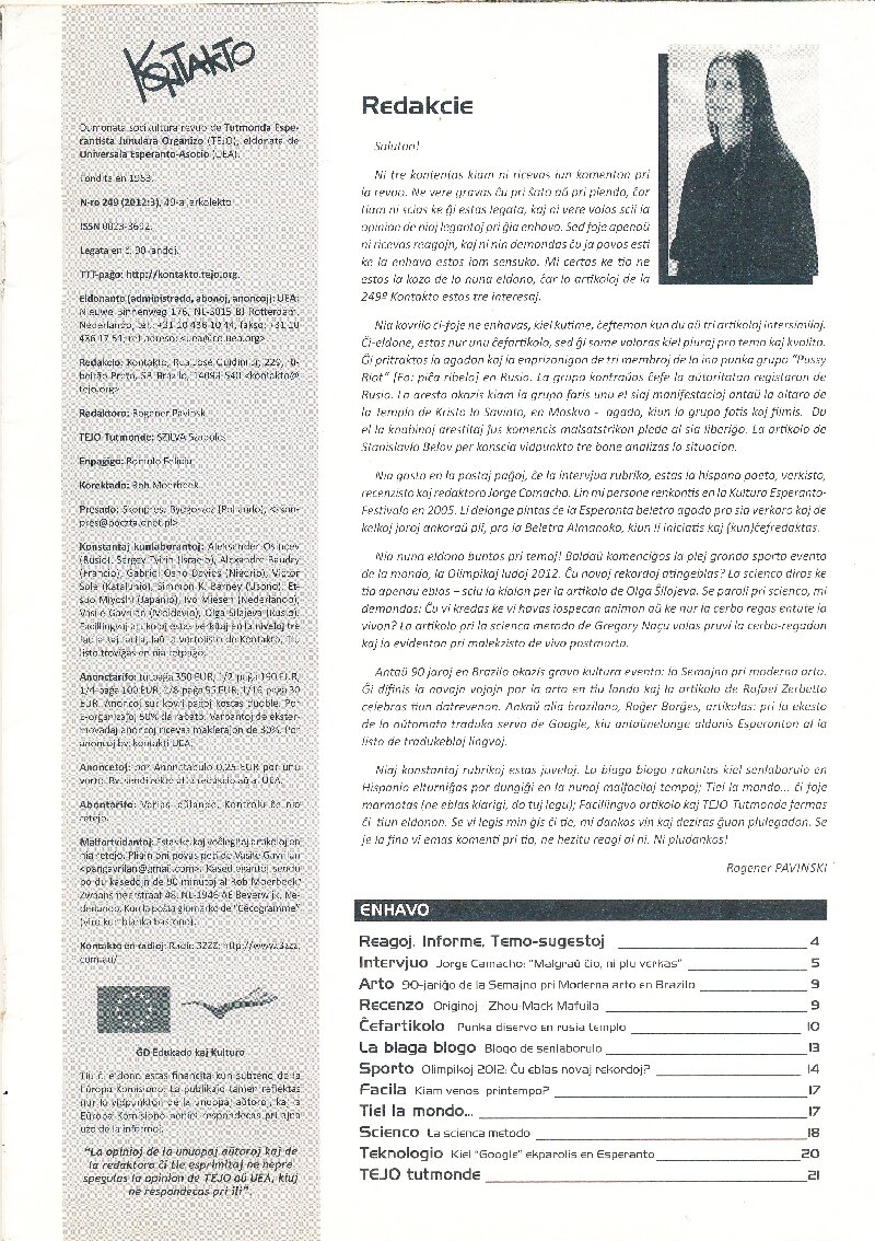 2012年国际青年世界语协会《KONTAKTO》第249期