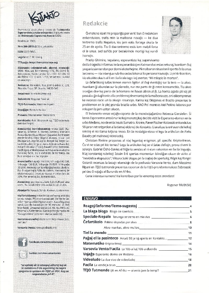 2015年国际青年世界语协会《KONTAKTO》第266期