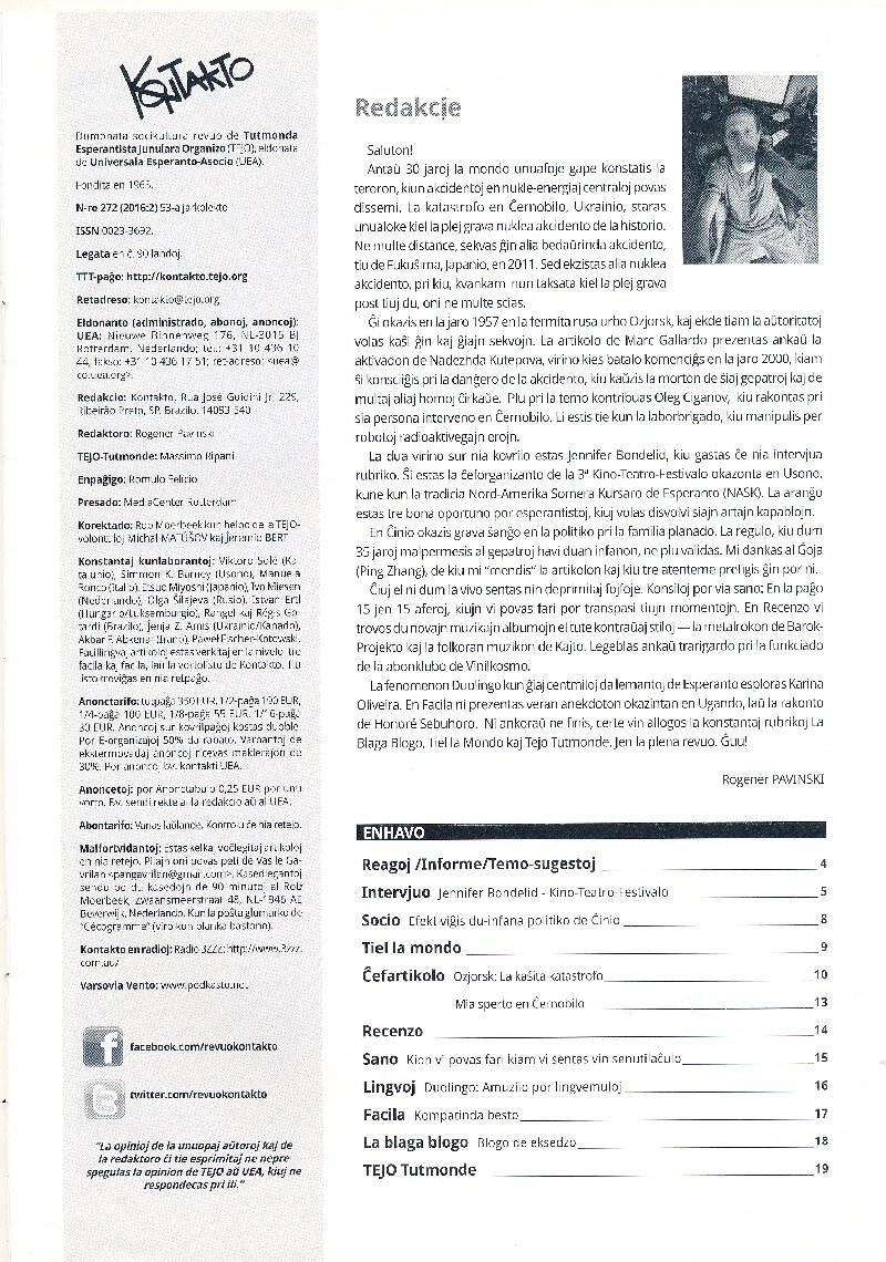 2016年国际青年世界语协会《KONTAKTO》第272期