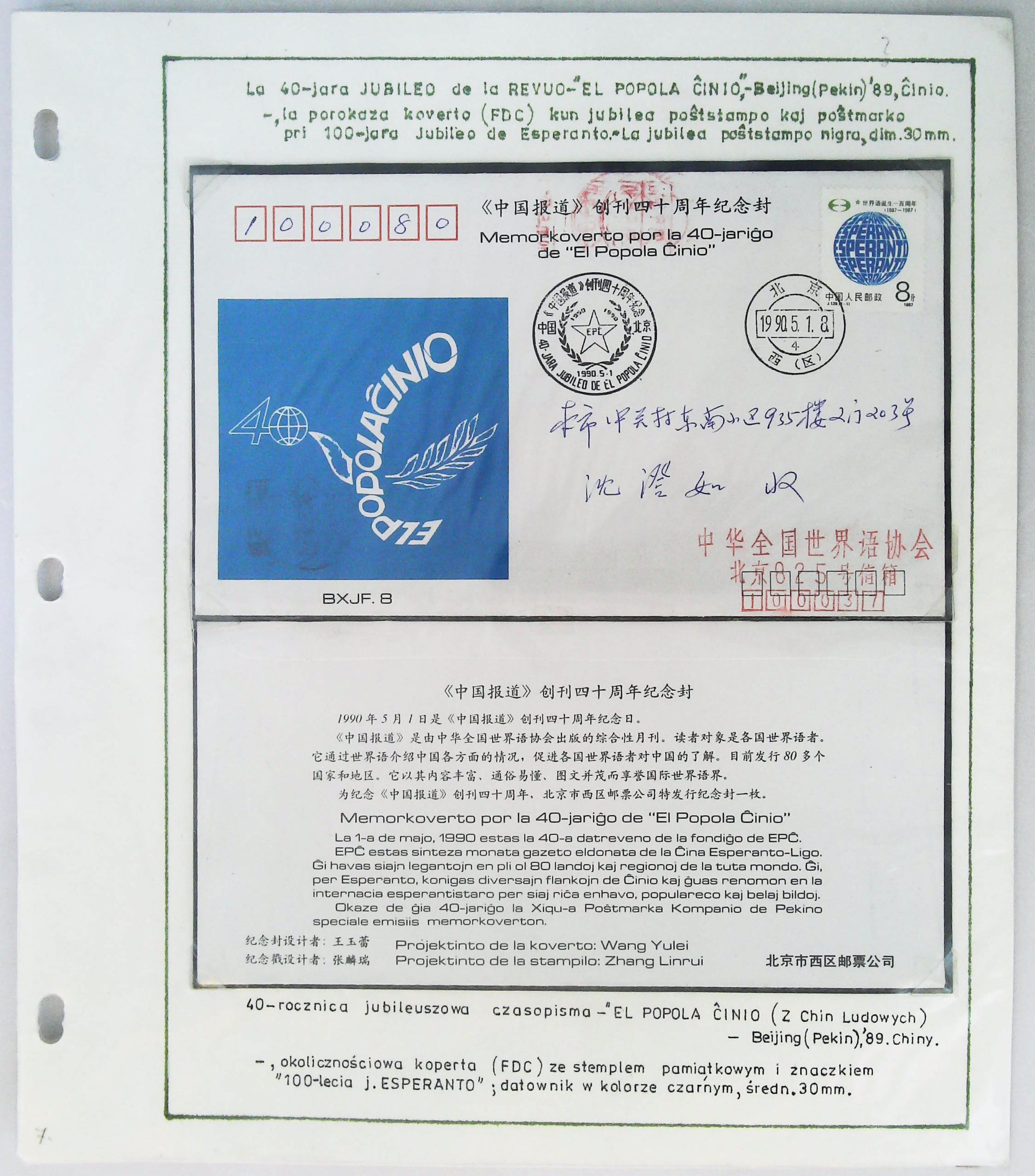 1990年第2届国际世界语科技学术会议实寄封展片